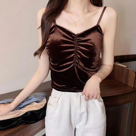 Ladies imported Spaghetti Straps Velvet Tank Top New Arrival