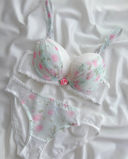 Lace Embroidery Bra Set Ultra Thin Gathered