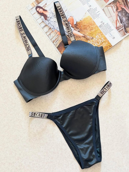 Dazzling and shimmering lingerie set adorned with sparkling glitter.